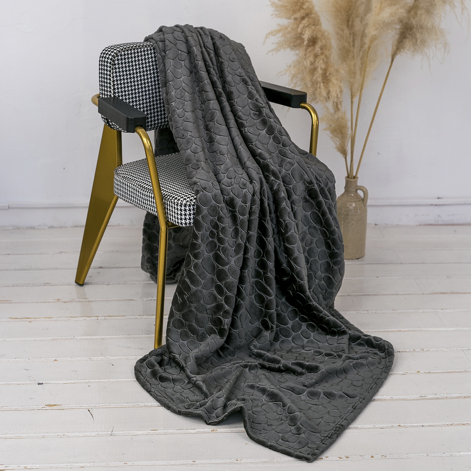 Плед ОЛИВИЯ однотонный с тиснением серые камешки 10-02