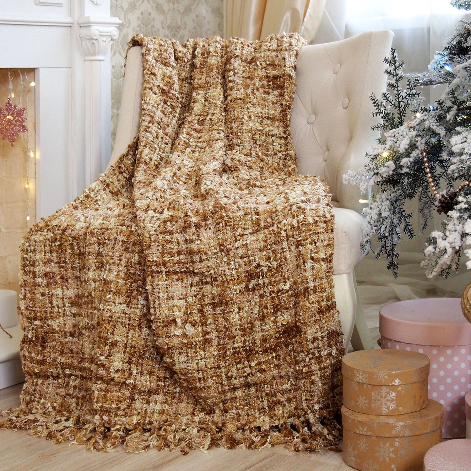 Плед с кистями TN-01 150х200см бежевый