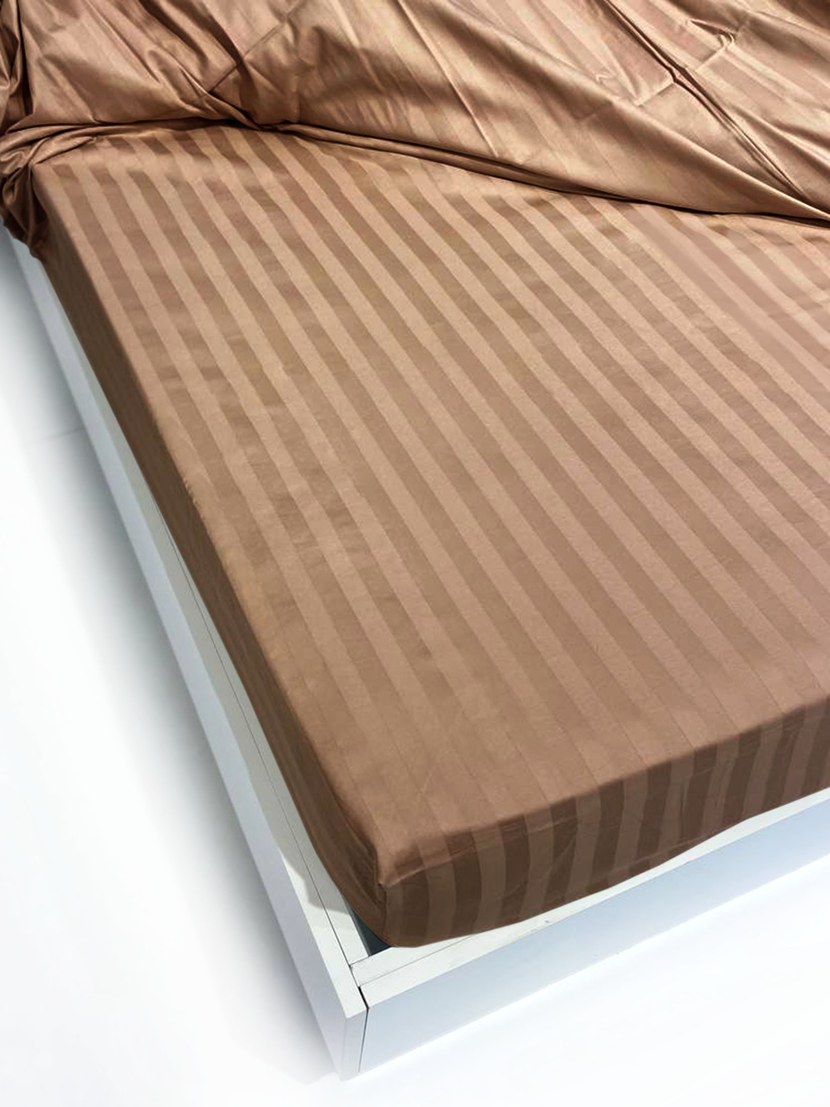 Простыня на резинке Сатин-Страйп светло-коричневая 2205
