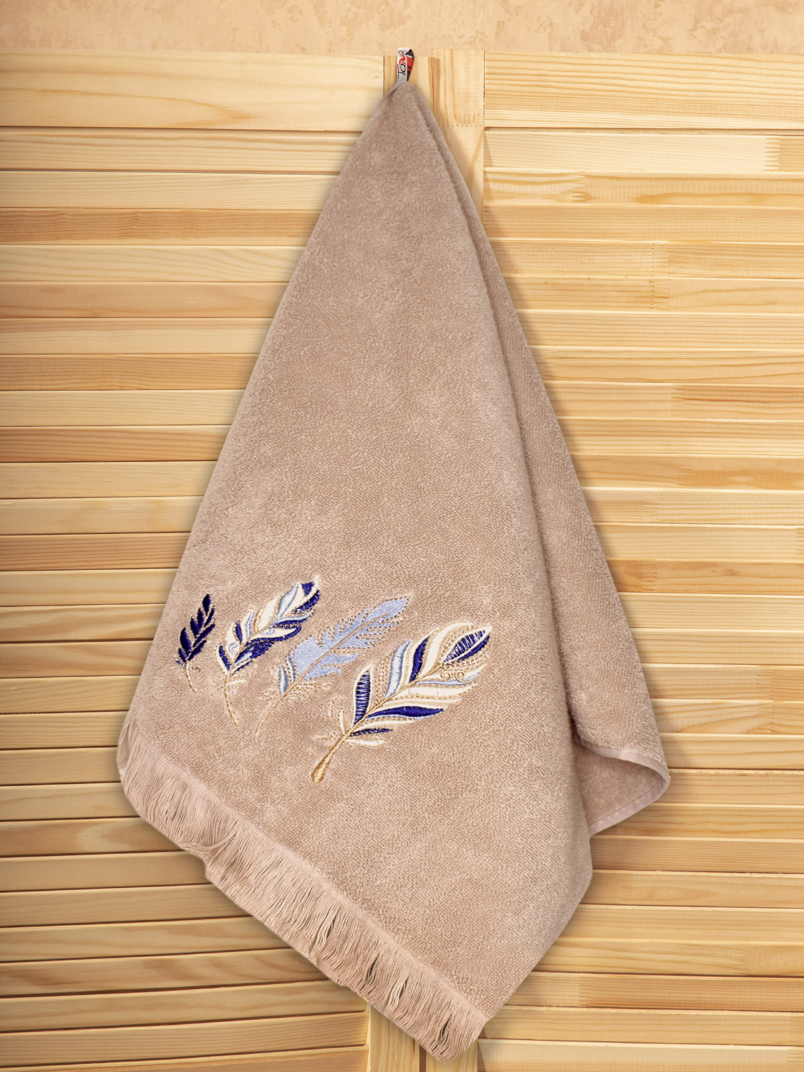 Полотенце махровое банное изготовлено из натурального хлопка. Мягкое и очень приятное на ощупь, оно отлично впитывает влагу, быстро сохнет, идеально подходит для ежедневного использования. Махровые полотенца практичны в применении, идеально подходят для самых различных целей и не требуют специального ухода, сохраняют первоначальный вид после многократных стирок, не теряют яркость цвета, остаются пушистыми и мягкими долгое время. Наши полотенца из 100% хлопка, являются экологичными и гипоаллергенными. Полотенца представлены в различных цветовых решениях, имеют вышивку в виде перышек, а также два варианта края полотенца: обычное или с бахромой. Идеально подойдет для повседневного использования, а также данные полотенца могут послужить отличным подарком для ваших близких. Компектация- 1шт.